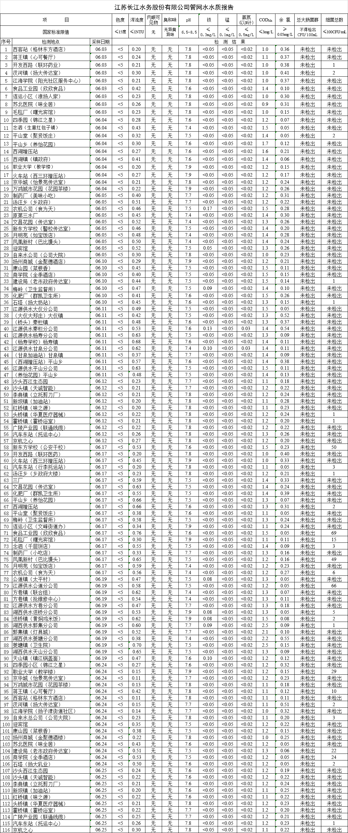 江蘇長江水務(wù)股份有限公司管網(wǎng)水水質(zhì)報告(2019年6月)