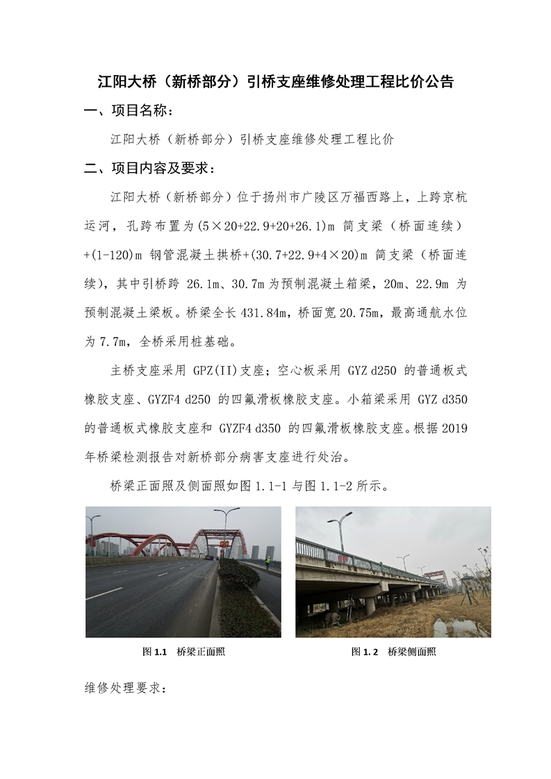 江陽(yáng)大橋(新橋部分)引橋支座維修處理工程比價(jià)文件.doc