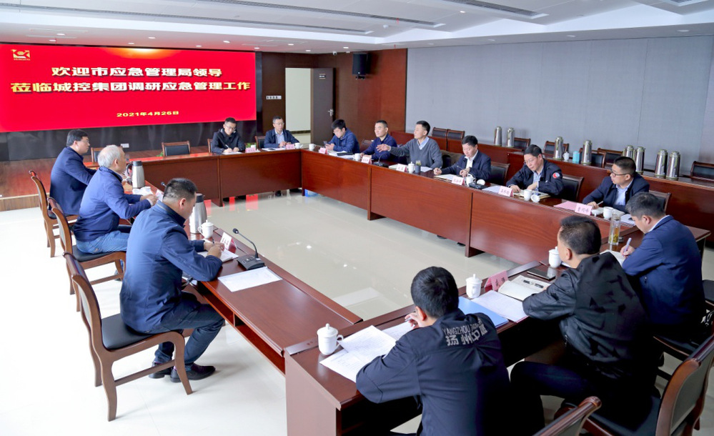 4月26日上午,揚(yáng)州市應(yīng)急管理局二級(jí)調(diào)研員李鳳如帶隊(duì)到城控集團(tuán)調(diào)研應(yīng)急管理工作。集團(tuán)副董事長(zhǎng)戚磊、集團(tuán)企管部、揚(yáng)州中燃、長(zhǎng)江水務(wù)、供熱公司、潔源排水、市政管網(wǎng)公司相關(guān)人員參加調(diào)研活動(dòng)。