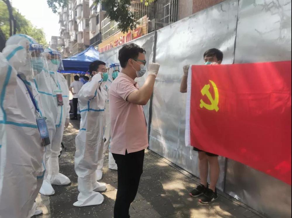 “城控集團抗疫志愿服務(wù)行動臨時黨支部”的旗幟從武塘社區(qū)再一次插上了廣儲社區(qū)的地界上。