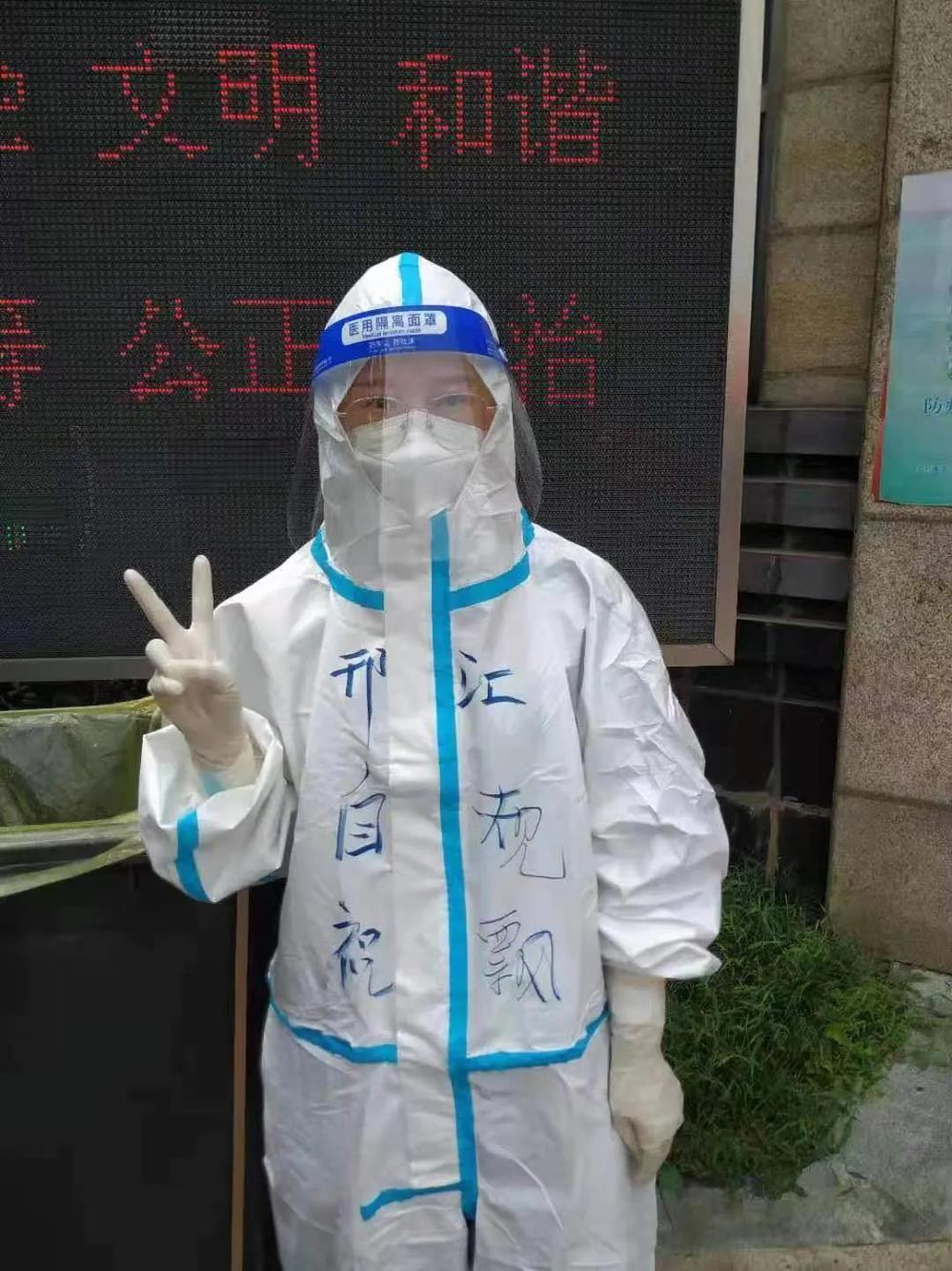 7月底,揚州突發(fā)新冠肺炎疫情,8月初,隨著疫情防控形勢的日益嚴峻,一線亟需志愿者,得知消息的夫妻倆同時做出決定:報名參加志愿者!去幫助需要幫助的人,用實際行動踐行初心!于是,他們把3歲的兒子送至父母家,便分赴抗疫一線:吳桐在高風險小區(qū)廣?;▓@福欣苑參與志愿服務,祝飄在維揚經濟開發(fā)區(qū)參加抗疫。夫妻倆每天早出晚歸,已經有近半個月沒有見到孩子了。想孩子的時候,他們會通過微信視頻和孩子見上一面。懵懂的孩子不知道爸爸媽媽正身處“疫”線,只知道他們有很重要的事情必須要做,所以每次視頻,總會問他們事情什么時候能辦完?辦完了早點接他回家……每每聽見兒子說這句話,祝飄總是會悄悄走開,因為她不想讓兒子看到她流淚的樣子……