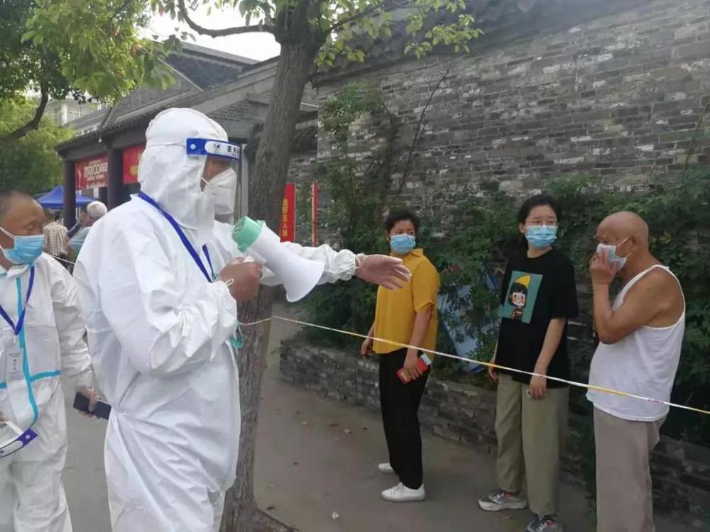 韓俊是長(zhǎng)江水務(wù)公司的一名共產(chǎn)黨員,也是揚(yáng)州市民觀察員協(xié)會(huì)廣陵辦事處的市民觀察員,自7月28日揚(yáng)州疫情發(fā)生以來,他還多了個(gè)新身份——田家炳中學(xué)核酸檢測(cè)點(diǎn)志愿者。