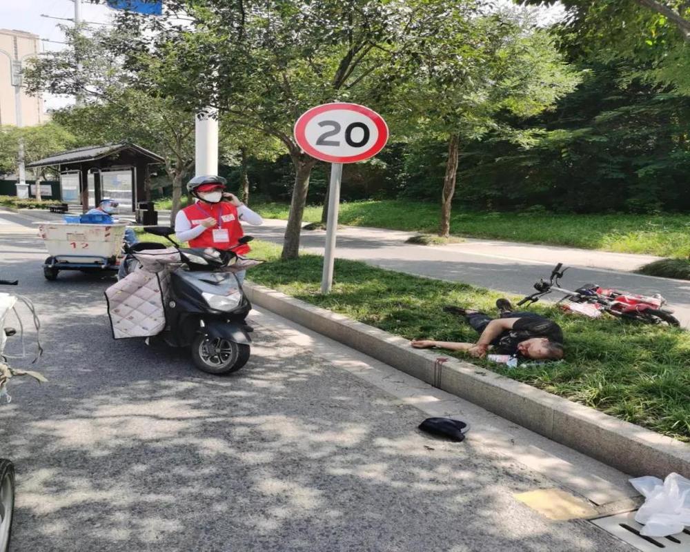 8月25日下午13時左右,集團志愿者服務隊第一組成員建盛公司員工趙斌在趕往翠月花園志愿者服務點途中,經過萬福東路“名城運河錦園”南門時,突然聽到對面車道傳來“嘭”的一聲,一名騎電動車的男子突然倒下,走近后發(fā)現,該男子面部朝地摔在了馬路邊上的綠化帶中,滿臉是血,已無法站立。