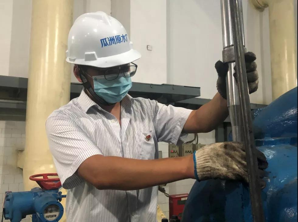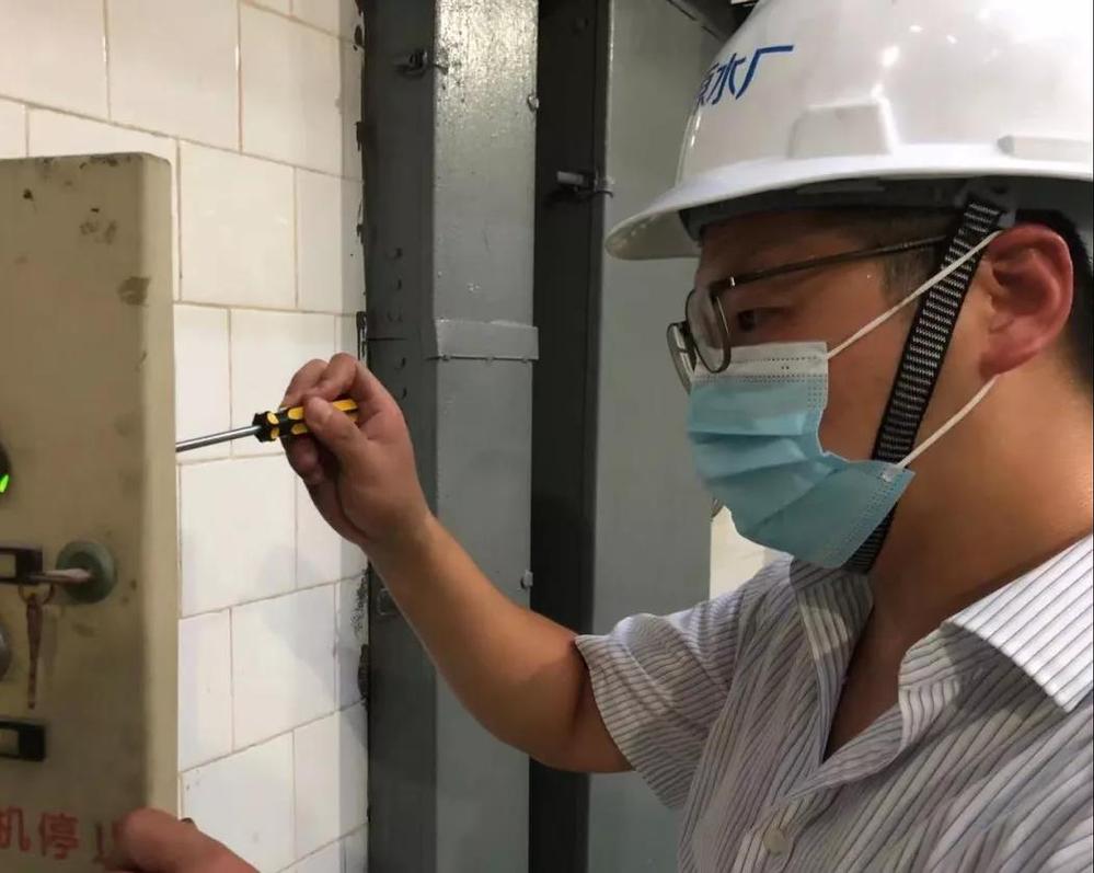 吳俊趕到泵房,經(jīng)過(guò)仔細(xì)查找,發(fā)現(xiàn)由于啟動(dòng)按鈕老化,按鈕接線端子因老化松動(dòng),組員提出可以用絕緣膠帶包裹修復(fù)的方案?!安恍?這個(gè)可容不得一絲馬虎,既已老化就要換新的!”他當(dāng)機(jī)立斷,一路小跑從倉(cāng)庫(kù)拿出新按鈕趕緊更換,在悶熱的泵房?jī)?nèi)他的額頭上布滿了汗水不停地滴落?!敖K于換好了!” 當(dāng)聽(tīng)到電機(jī)啟動(dòng)一聲長(zhǎng)鳴,水泵轟隆隆運(yùn)轉(zhuǎn)了起來(lái),機(jī)組終于恢復(fù)了正常,他高興地?fù)]了揮手,組員們看見(jiàn)他們的班長(zhǎng)像剛從水里撈出來(lái)一樣,大家也紛紛笑了起來(lái)。在戰(zhàn)疫情、保生產(chǎn)的形勢(shì)下,吳俊一直保持著高度警惕,一邊做廠區(qū)疫情防控工作,一邊時(shí)刻留心設(shè)備運(yùn)行狀況,做好供水的“源頭哨兵”。
