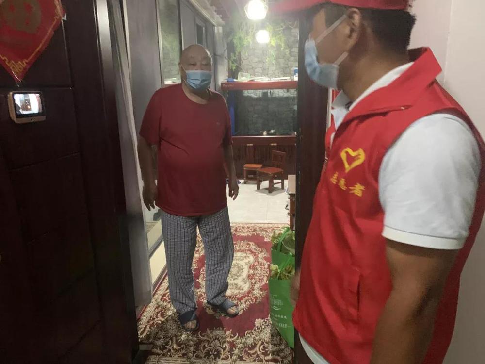 圖為資產(chǎn)公司副總經(jīng)理袁月翔和社區(qū)工作人員2人一組,進(jìn)行入戶排查工作。