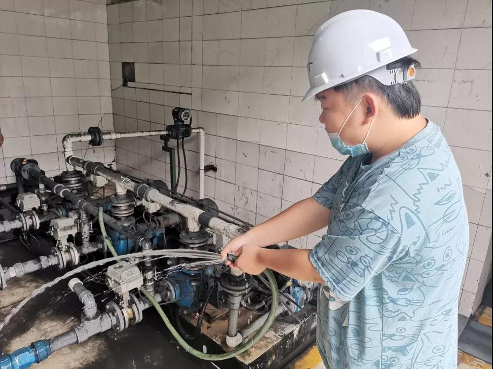 “端子溫度正常,無異?,F(xiàn)象?!币淮笤?,25歲的陳旭和同事手持測溫儀,在6千伏主變進行巡檢測溫。“特別是35千伏主線,連接著上級供電變電站,須重點檢測?!标愋褡屑毜乜粗t外測溫儀里的數(shù)字,沒有放過任何一個可疑數(shù)據(jù)。就是這樣一個年輕人水務人,疫情駐廠期間,他和同事每天都會帶著測溫儀、手電筒等對廠區(qū)內(nèi)各設備進行加密特巡,實時跟蹤設備狀況,做好隱患排查,確保所有設備健康穩(wěn)定運行。
