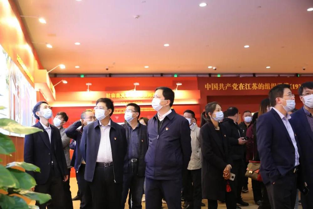 展館里,大家循著中國共產(chǎn)黨在江蘇波瀾壯闊的奮斗歷程這一條主線,仔細(xì)參觀了“建立黨的組織,為新民主主義革命勝利作出重要貢獻(xiàn)”“在探索中前進(jìn),進(jìn)行社會(huì)主義革命和建設(shè)”“實(shí)行改革開放,推進(jìn)中國特色社會(huì)主義江蘇實(shí)踐”“決勝全面小康,交出‘強(qiáng)富美高’新江蘇建設(shè)的時(shí)代答卷”4個(gè)部分。一幅幅泛黃照片、一段段珍貴視頻和一個(gè)個(gè)沉浸式場(chǎng)景體驗(yàn),為全體黨員干部上了一堂入眼入耳、入腦入心的實(shí)景黨課,大家在看、聽、論、思中深刻感悟中國共產(chǎn)黨在江蘇砥礪奮斗的初心使命。