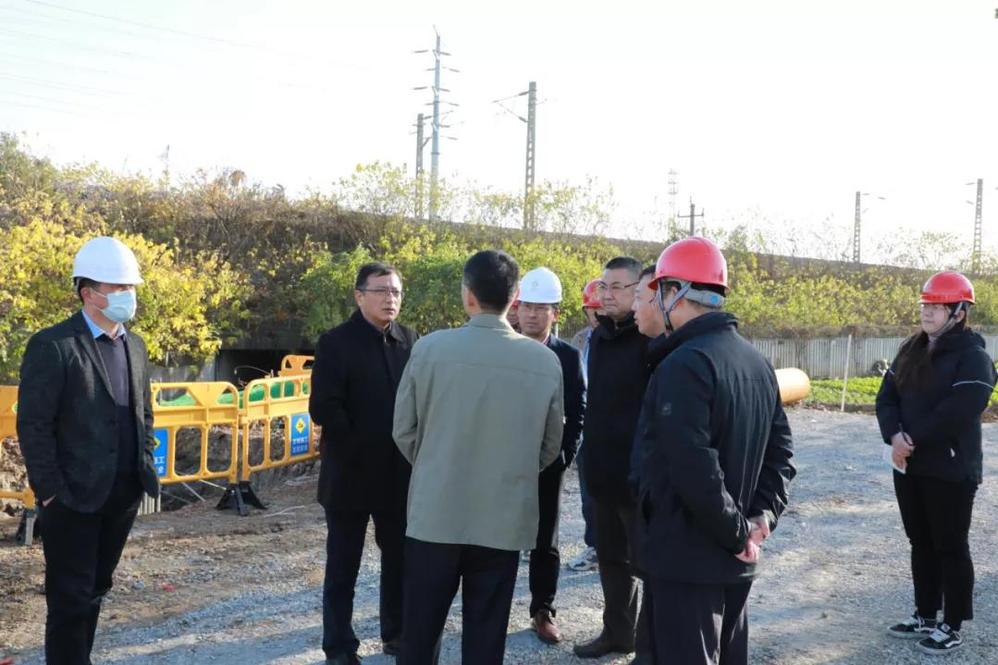 在北線二期施工現(xiàn)場,陳鍇竑聽取了項目整體進(jìn)展情況的匯報,詳細(xì)了解了市區(qū)供熱管道“互聯(lián)互通”建設(shè)規(guī)劃,地埋管道保溫工藝,工程建設(shè)關(guān)鍵節(jié)點,現(xiàn)場協(xié)調(diào)工程難點并就下一步的工作提出了具體要求。