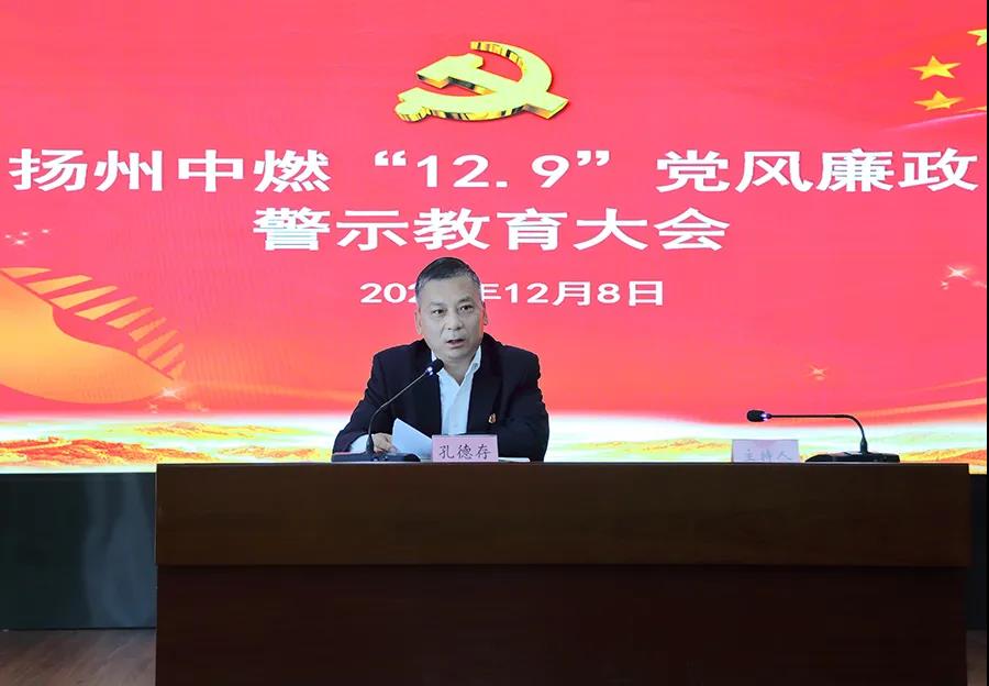 為進(jìn)一步貫徹落實全面從嚴(yán)治黨方針,強(qiáng)化黨員干部的廉潔自律意識,推動黨風(fēng)廉政建設(shè)向縱深發(fā)展,12月8日下午,揚(yáng)州中燃公司召開黨風(fēng)廉政警示教育專題大會。公司領(lǐng)導(dǎo)班子全體成員、中層干部及關(guān)鍵崗位人員參加會議。