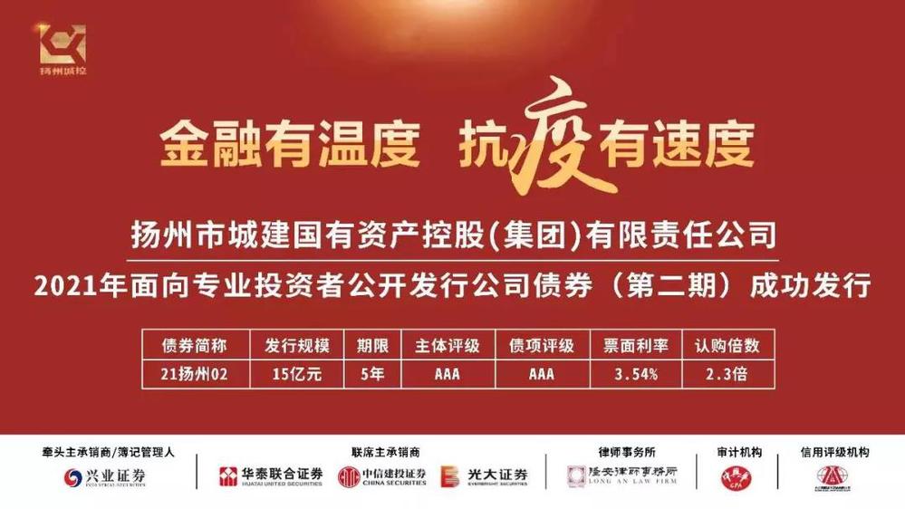 資產(chǎn)總額超過1600億元,注冊資本金增至100億元,綜合實(shí)力位列全國城投企業(yè)28強(qiáng),排名再創(chuàng)新高。全年累計融資104.61億元,疫情期間發(fā)行5年期15億公司債,創(chuàng)集團(tuán)2017年以來同期限債券發(fā)行利率新低。揚(yáng)州公用控股集團(tuán)獲全市首家綠色主體認(rèn)證企業(yè)。