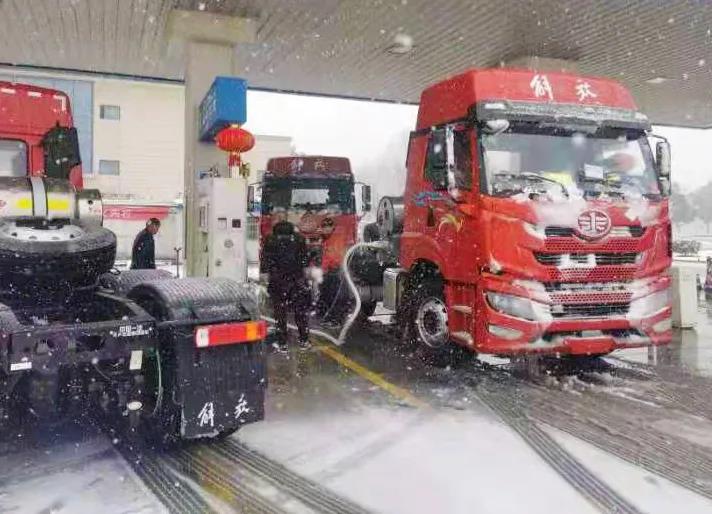 加氣站點(diǎn)內(nèi)前來(lái)加氣的公交車、出租車和重卡車輛絡(luò)繹不絕。為保證城市客運(yùn)和過(guò)境重卡車用天然氣燃料的正常補(bǔ)給,加氣操作工們毅然守護(hù)在第一線,無(wú)畏風(fēng)雪、年復(fù)一年地將看似簡(jiǎn)單的操作零差錯(cuò)地完成。