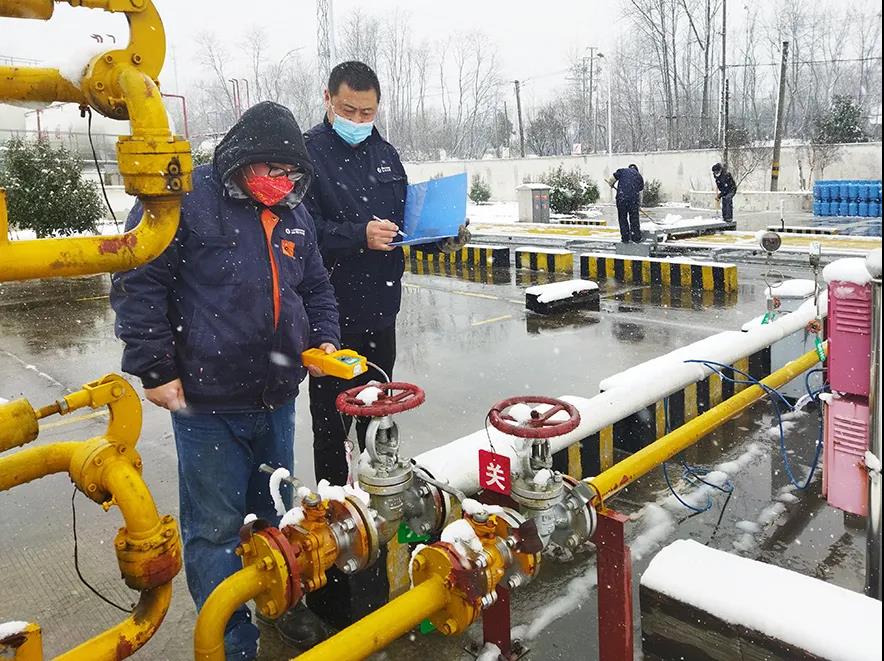 在楊廟液化氣場(chǎng)站,灌裝班組員工頂風(fēng)冒雪,堅(jiān)守崗位,在保證灌裝工作安全有序開展的同時(shí),對(duì)場(chǎng)站設(shè)備設(shè)施,進(jìn)行新一輪巡查檢修工作,確保在雨雪天氣下,所有設(shè)備設(shè)施正常運(yùn)行。