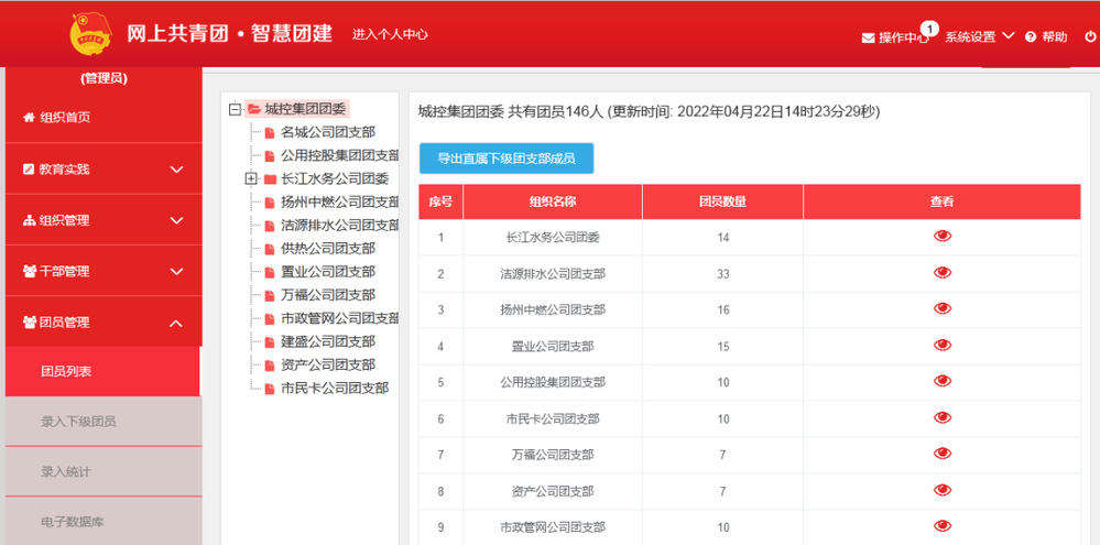 加強組織建設,夯實團青工作基礎。堅持“黨建帶團建”工作機制,加強團組織基礎建設。一是做好團青摸底工作,對集團系統(tǒng)內(nèi)青年工作情況做到心中有數(shù);二是明確專人做好智慧團建系統(tǒng)錄入工作,確保團青工作實現(xiàn)動態(tài)化管理;三是指導符合條件的子公司成立團支部,并配齊配強了人員力量,不斷完善團的組織體系。