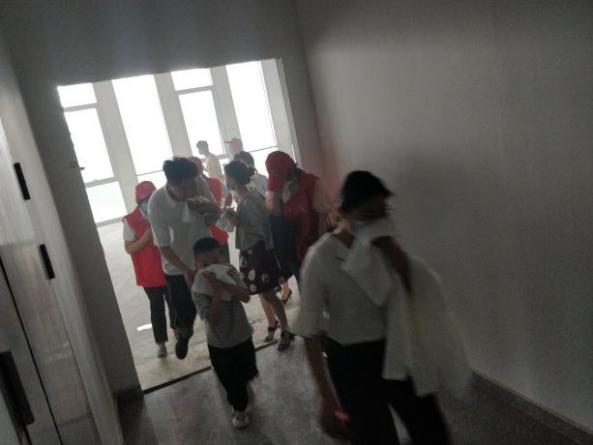 “快!快!快!”,樓層安全員引導著被困人員,通過消防樓梯迅速撤離。此時外圍與各出入口已拉起警戒線,禁止與滅火救援無關人員、車輛進入大廈或危險區(qū)域,工作人員對大廈所有外圍區(qū)域進行嚴管,確保消防通道的暢通,同時將被困人員指引至內(nèi)街廣場安全地帶。