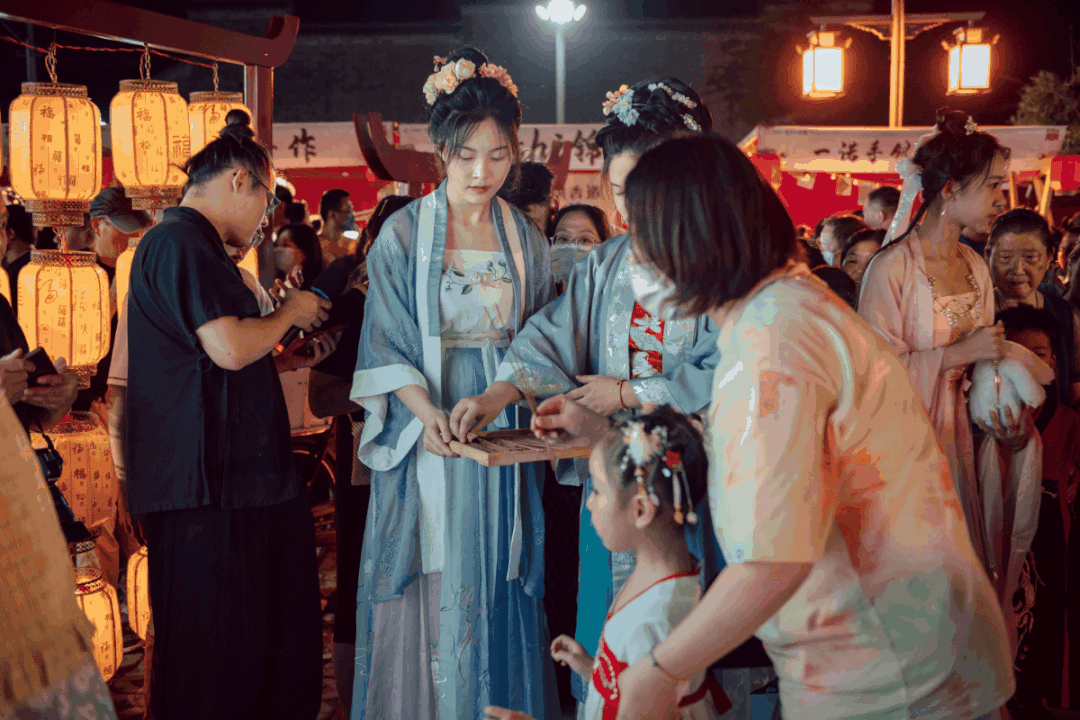 剛剛過去的中秋假期,在東關(guān)街馥園廣場(chǎng)內(nèi),一場(chǎng)“穿越古今揚(yáng)文化,家和國(guó)安賞月圓”的奇妙游園會(huì)精彩上演!猜燈謎、逛市集、投壺射箭、漢服巡游、拜月祈愿……