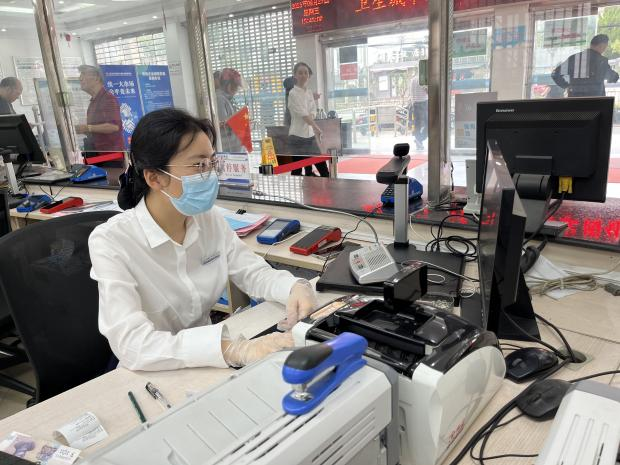 “十一”國(guó)慶當(dāng)天,營(yíng)業(yè)所大廳柜員吳玉瑩一早就提前到崗,整理好上班期間需要用的現(xiàn)金、票據(jù)。大廳正式進(jìn)入營(yíng)業(yè)時(shí)間后,吳玉瑩面帶微笑地迎接每一位進(jìn)入大廳辦理業(yè)務(wù)的用戶,用熱情高質(zhì)的服務(wù)守護(hù)用戶歡樂祥和過節(jié)。