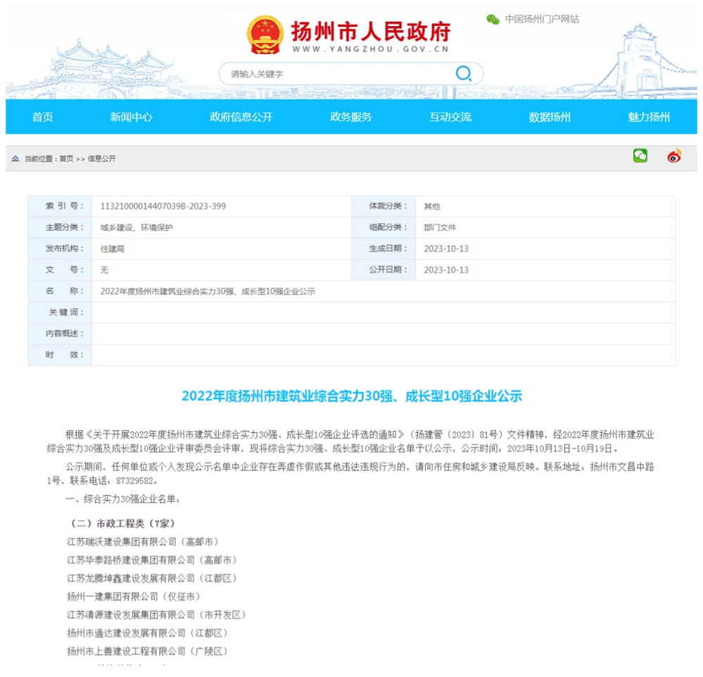 近日,揚州市建筑業(yè)綜合實力30強、成長型10強評選結果公示,上善公司成功晉級揚州市建筑業(yè)綜合實力30強。