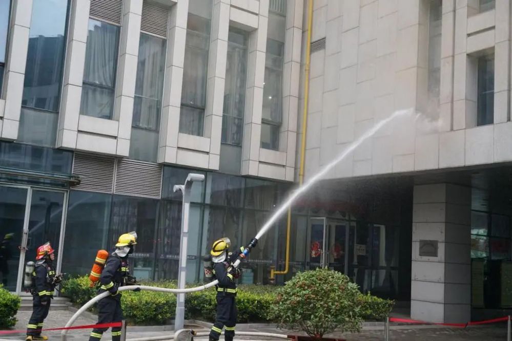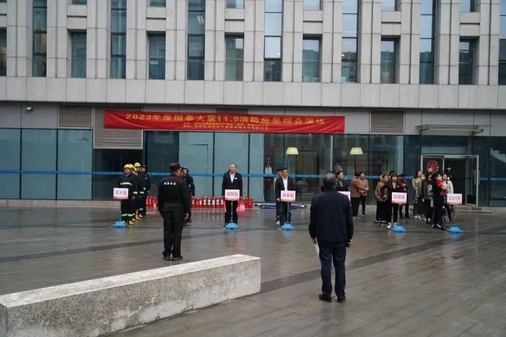 在消防疏散應急演練環(huán)節(jié),演練人員模擬國泰大廈發(fā)生火災,開展了值班人員確認火情、初期滅火、人員疏散逃生、報警和引接消防員等應急演練流程。同時,邗江區(qū)消防大隊在內街廣場開展了消防滅火器的使用培訓,職工、物業(yè)管理、業(yè)主代表等人員參與了滅火器使用實操。
