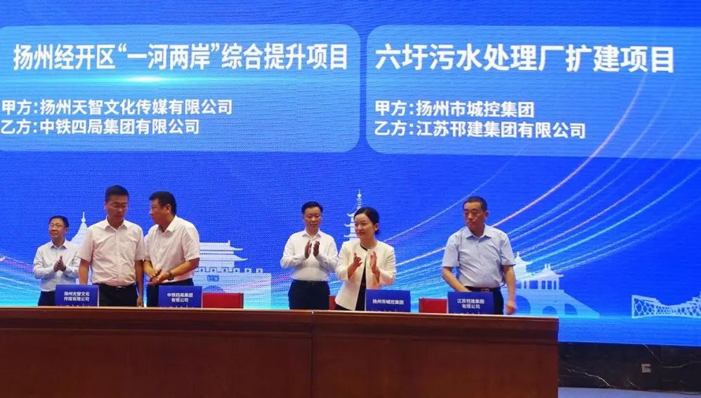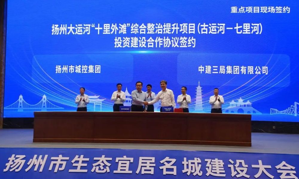 會(huì)上,11個(gè)項(xiàng)目舉行現(xiàn)場(chǎng)簽約。其中,城控集團(tuán)與中建三局圍繞提升城市服務(wù)功能,簽訂《揚(yáng)州大運(yùn)河“十里外灘”綜合整治提升項(xiàng)目(古運(yùn)河-七里河)投資建設(shè)合作協(xié)議》,與江蘇邗建集團(tuán)圍繞基礎(chǔ)設(shè)施改善,簽訂六圩污水處理廠(chǎng)擴(kuò)建項(xiàng)目。此次簽約,各方將本著優(yōu)勢(shì)互補(bǔ)、互惠互利、協(xié)同發(fā)展原則,共同推動(dòng)揚(yáng)州大運(yùn)河文旅資源開(kāi)發(fā)及城市基礎(chǔ)設(shè)施建設(shè),為揚(yáng)州高質(zhì)量發(fā)展貢獻(xiàn)新的更大力量。