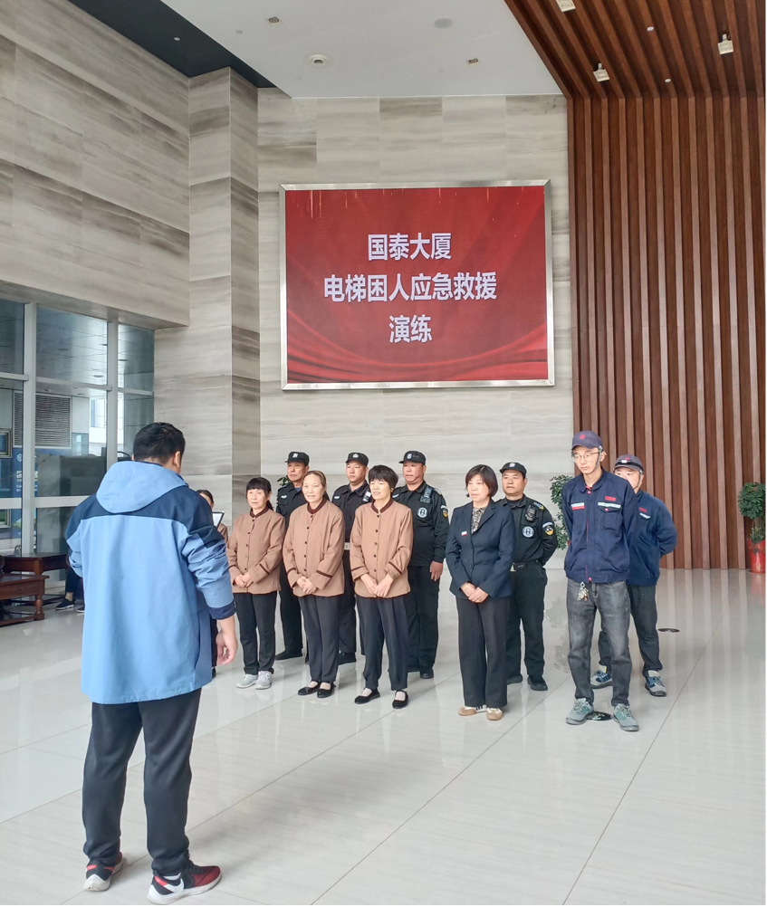 為進(jìn)一步增強(qiáng)業(yè)主乘坐電梯的安全防范意識,提高突發(fā)事件的應(yīng)變能力,同時為提高物業(yè)工作人員處置突發(fā)事件的應(yīng)急能力,掌握突發(fā)事件的崗位職責(zé)和處理流程。10月11日上午,國泰大廈物業(yè)服務(wù)中心聯(lián)合電梯維保單位在國泰大廈2號樓開展電梯困人應(yīng)急救援實(shí)戰(zhàn)演練。