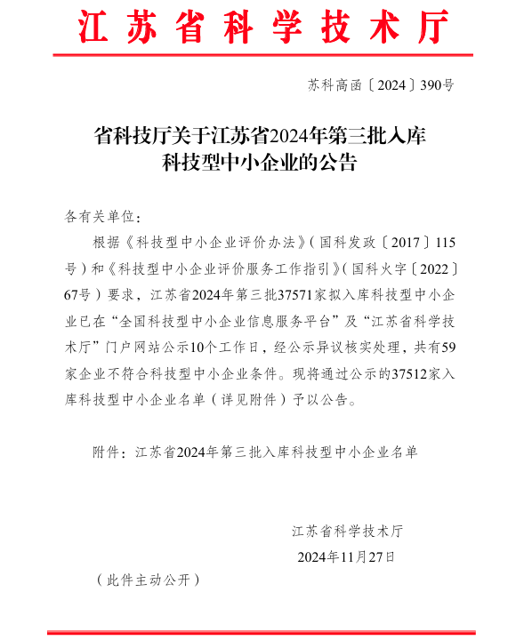 近日,江蘇省科學(xué)技術(shù)廳公布了江蘇省2024年第三批入庫科技型中小企業(yè)名單,管網(wǎng)公司下屬子公司運(yùn)維公司榮獲江蘇省2024年“科技型中小企業(yè)”稱號(hào)。“科技型中小企業(yè)”由江蘇省科技廳授予資質(zhì)并備案,是企業(yè)創(chuàng)新能力“認(rèn)證”的重要標(biāo)志。