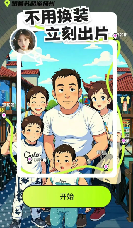 AI旅拍核心依托先進(jìn)的AIGC算法。其強(qiáng)大的面部識(shí)別與重建技術(shù),精準(zhǔn)捕捉游客五官特征;智能光影膚色匹配技術(shù)則實(shí)現(xiàn)影像與揚(yáng)州文化元素的無(wú)痕自然融合。支持單人和多人寫(xiě)真、卡通濾鏡風(fēng)格,多人合拍時(shí)智能協(xié)調(diào)不同人物的風(fēng)格融合,確保群體照既風(fēng)格統(tǒng)一又個(gè)性鮮明。最終生成的每一張照片,都是藝術(shù)感與真實(shí)感兼具的“穿越”瞬間,成為游客獨(dú)一無(wú)二的揚(yáng)州珍藏記憶。