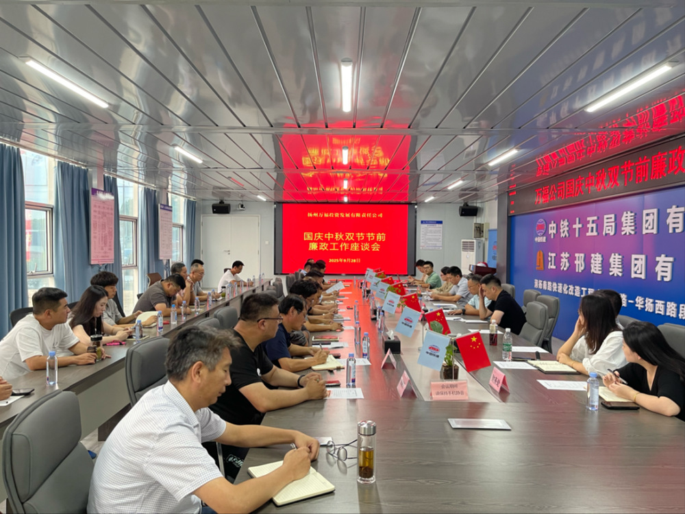 為深入貫徹中央八項規(guī)定精神,營造風(fēng)清氣正的節(jié)日氛圍,嚴防“八小時外”和“節(jié)日病”,9月28日下午,萬福公司黨支部在潤揚路南延項目部開展節(jié)前廉政工作座談會。萬福公司領(lǐng)導(dǎo)班子成員、各部門負責(zé)人及現(xiàn)場工作人員;中鐵十五局、揚建集團、邗建集團、太平洋西北建設(shè)集團各項目書記、項目經(jīng)理和監(jiān)理單位工作人員參加會議。