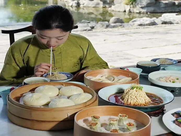 長(zhǎng)樂客?!扒镯嵲绮柩偶敝噩F(xiàn)清代鹽商“早茶會(huì)客”的雅趣,蟹黃湯包、翡翠燒賣等淮揚(yáng)名點(diǎn)搭配古箏琵琶演奏,讓游客在舌尖與耳畔同步感受非遺魅力。隔壁的芍藥園子書場(chǎng)內(nèi),評(píng)彈藝人傾情演繹《珍珠塔》《雙金錠》等經(jīng)典曲目,場(chǎng)場(chǎng)爆滿的盛況印證著傳統(tǒng)曲藝的當(dāng)代生命力。長(zhǎng)樂鹽商宴更是海納八方客,單日最高接待量突破200人次,沉浸式鹽商家宴成為美食愛好者的全新打卡地標(biāo)。