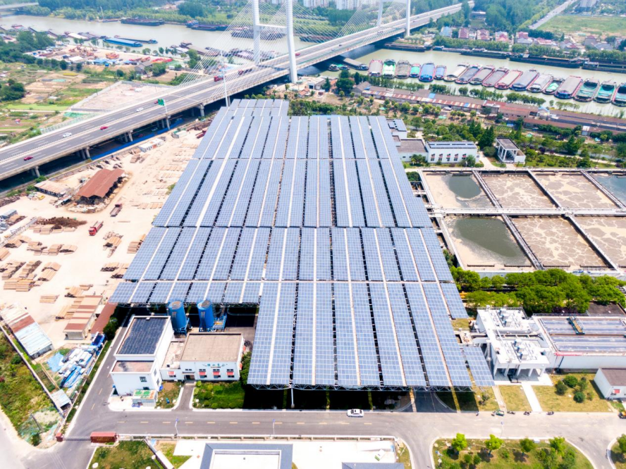 圖注:全國首批、江蘇首家建成投產(chǎn)的“光伏+水務”項目(湯汪污水處理廠電站)